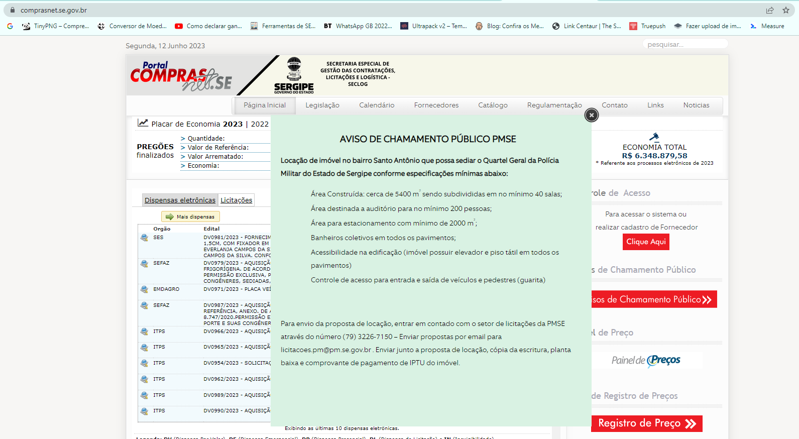 Locação de imóvel no bairro Santo Antônio que possa sediar o Quartel Geral da Polícia Militar do Estado de Sergipe conforme especificações mínimas abaixo: